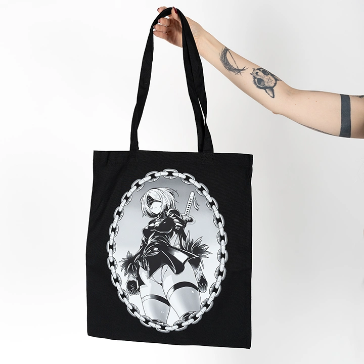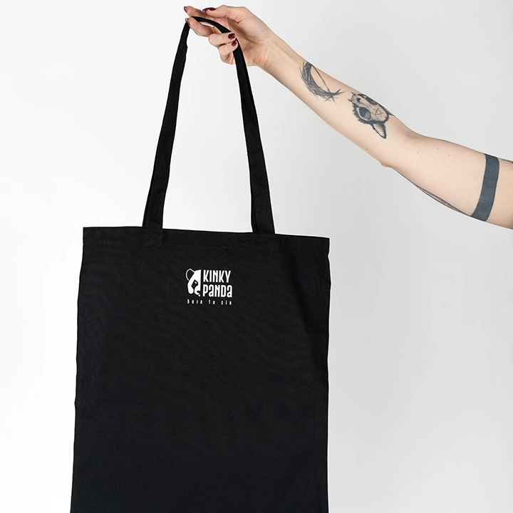 We offer a unique design of printed bag, this time 2B. The bags come from the Czech Republic and the design was created by a Czech artist. The colour is black and the material is canvas. The front side shows the main design of the bag and the back side features the Kinky Panda logo at the top centre.