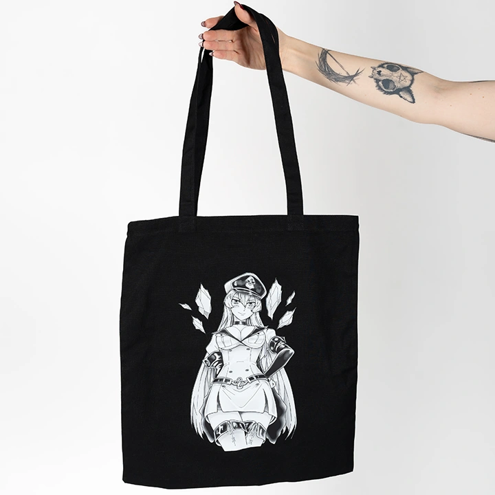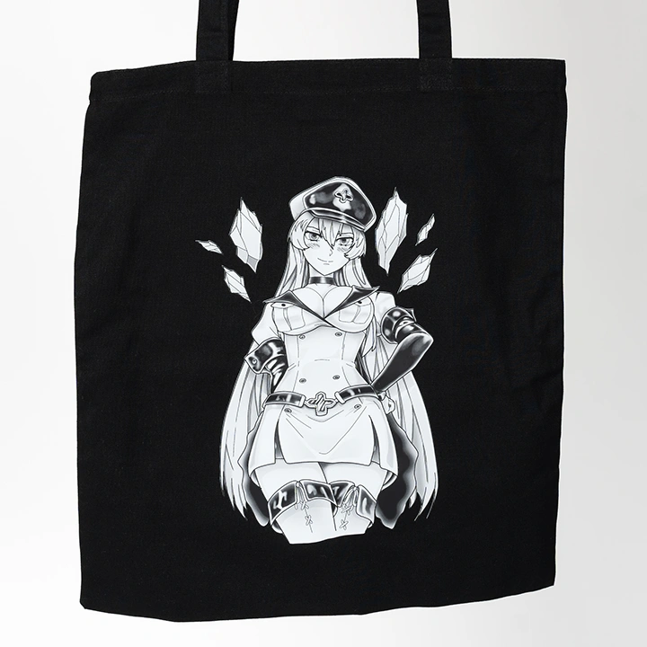 Bag based on the anime Akame ga Kill. Esdeath bag. The design comes from a Czech artist. The color of the bag is black and the material is canvas.